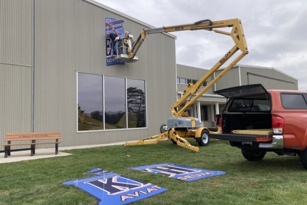 Brodhead Sign Co. was busy again at the museum today, repurposing the original museum hangar sign on the airport side of the facility. If you fly-in to Brodhead Airport, there’s no way to miss us now!