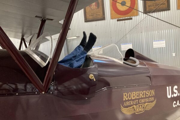 Something is afoot at the museum… Restoration on our 1927 Travel Air 4000 sometimes requires a little gymnastics! Thanks to our creative mechanic team – and our generous donors who make these projects possible! Join us – donate today at www.kelchmuseum.org/donation-intro.